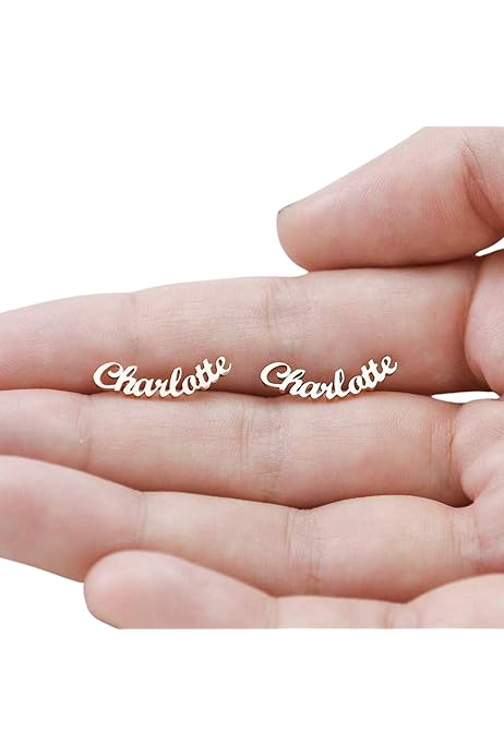 Amazon Com Aangella Sterling Silver Stud Personalized Name Earring Custom Gift For Girls Women Cursive Earrings With Your Own Name Clothing Shoes Jewelry